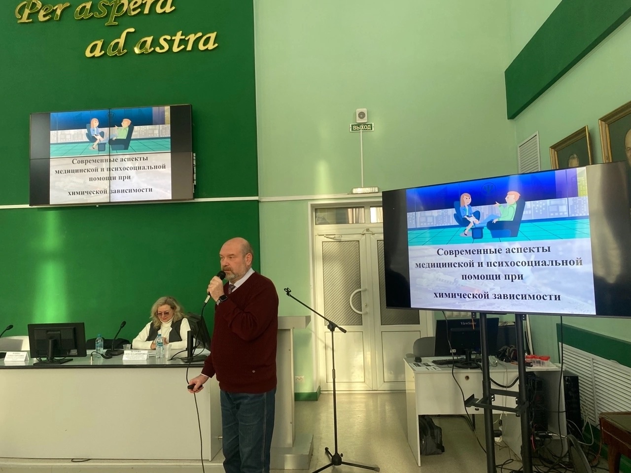 Доцент кафедры «Неврология, нейрохирургия и психиатрия» В.Б. Калистратов в своём докладе акцентировал внимание на значимость своевременной клинической диагностики и методов лечения посттравматического стрессового расстройства, ассоциированного с черепно-мозговой травмой. А.Н. Поликарпочкин, профессор кафедры «Неврология, нейрохирургия и психиатрия», главный врач Центра спортивной медицины «Бароком», проанализировал физиологические закономерности восстановительных процессов оксигенобаротерапии в докладе «Оценка текущего функционального состояния организма при использовании отдельных методов реабилитации».